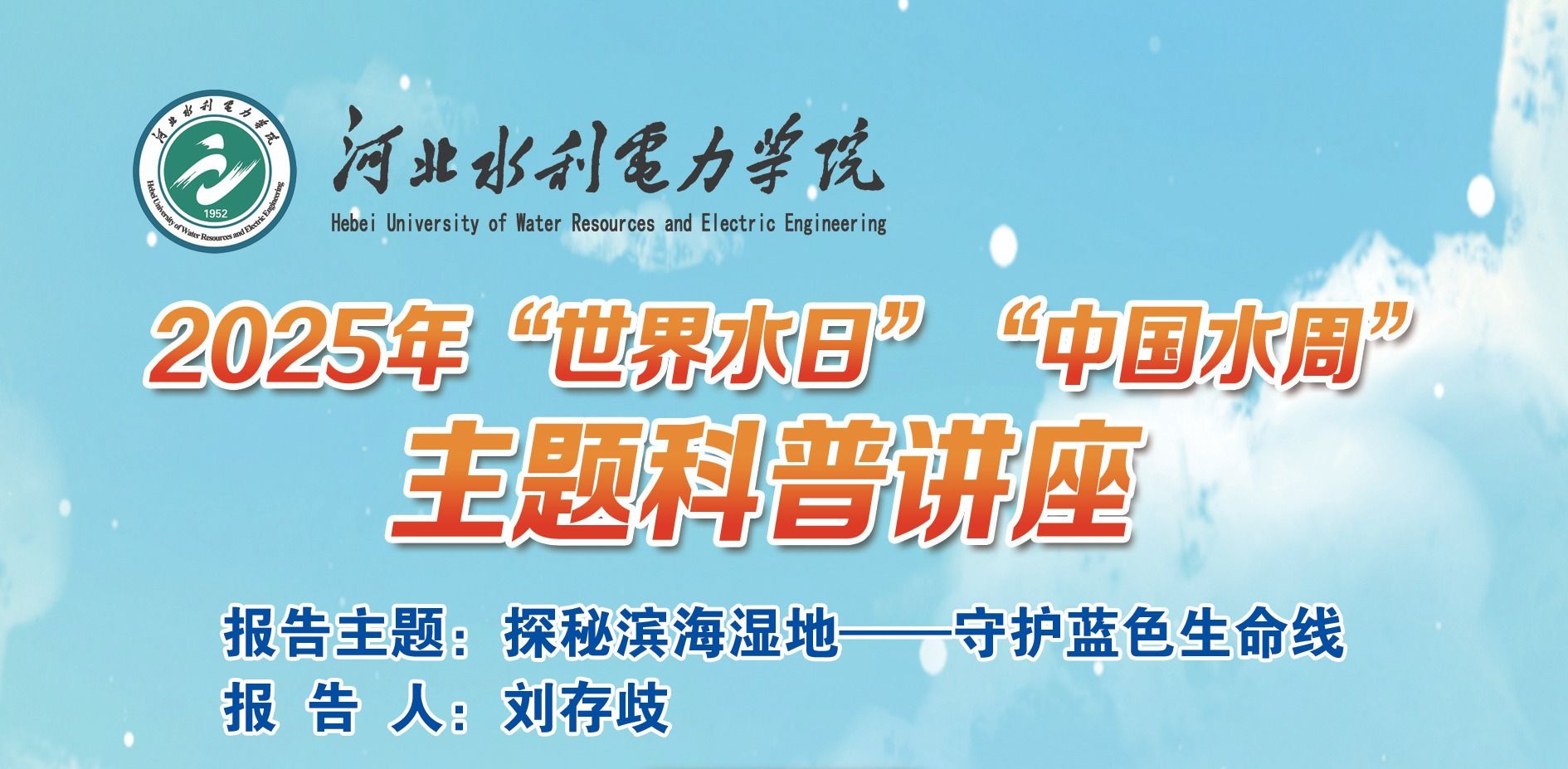2025年3月22日是第三十三届“世界水日”,3月22日—28日是第三十八届“中国水周”,联合国确定2025年“世界水日”主题为“Glacier Preservation(冰川保护)”。我国纪念2025年“世界水日”“中国水周”活动主题为“推动水利高质量发展,保障我国水安全”。围绕“中国水周”活动主题,结合学校重点工作,beat365官网将于2025年3月21日-3月28日组织主办“世界水日”“中国水周”主题宣传活动,欢迎广大师生积极参与! 活动主题:守护蓝色碳汇 ...