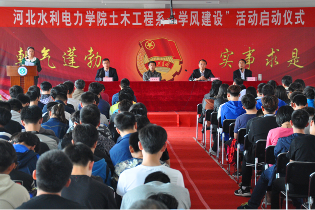 4月20日下午,土木工程系在学校大学生活动中心4楼报告厅举行“学风建设”活动启动仪式。土木工程系全体教师以及学生代表共计400余人参加了启动仪式,学生处处长曹青松,教务处处长裴祥喜出席了启动仪式。 仪式上,土...