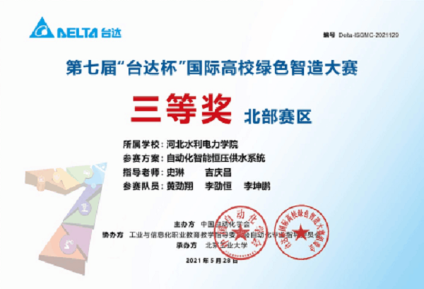 2021年第七届“台达杯”国际高校绿色智造大赛隆重举行,全球200余所高校,546支代表队参赛。由水利工程学院史琳副书记、自动化与通信工程学院吉庆昌副院长作为指导教师,学院水电1806黄劲翔、水电1805李劭恒参加本次...
