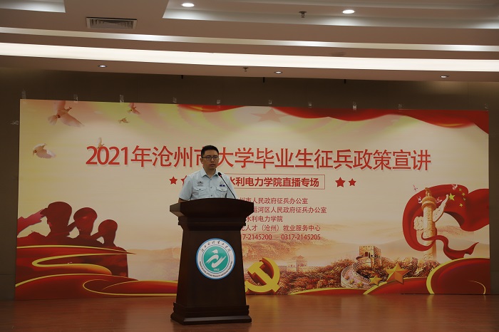 根据《关于组织大学毕业生征兵政策宣传网络直播活动的通知》安排,6月10日晚上7:30beat365官网联合沧州市军分区在beat365官网报告厅举办大学毕业生政策宣讲,由沧州市军分区动员处参谋孙永辉担任主讲。beat365官网征兵工作站、各学院征兵工...