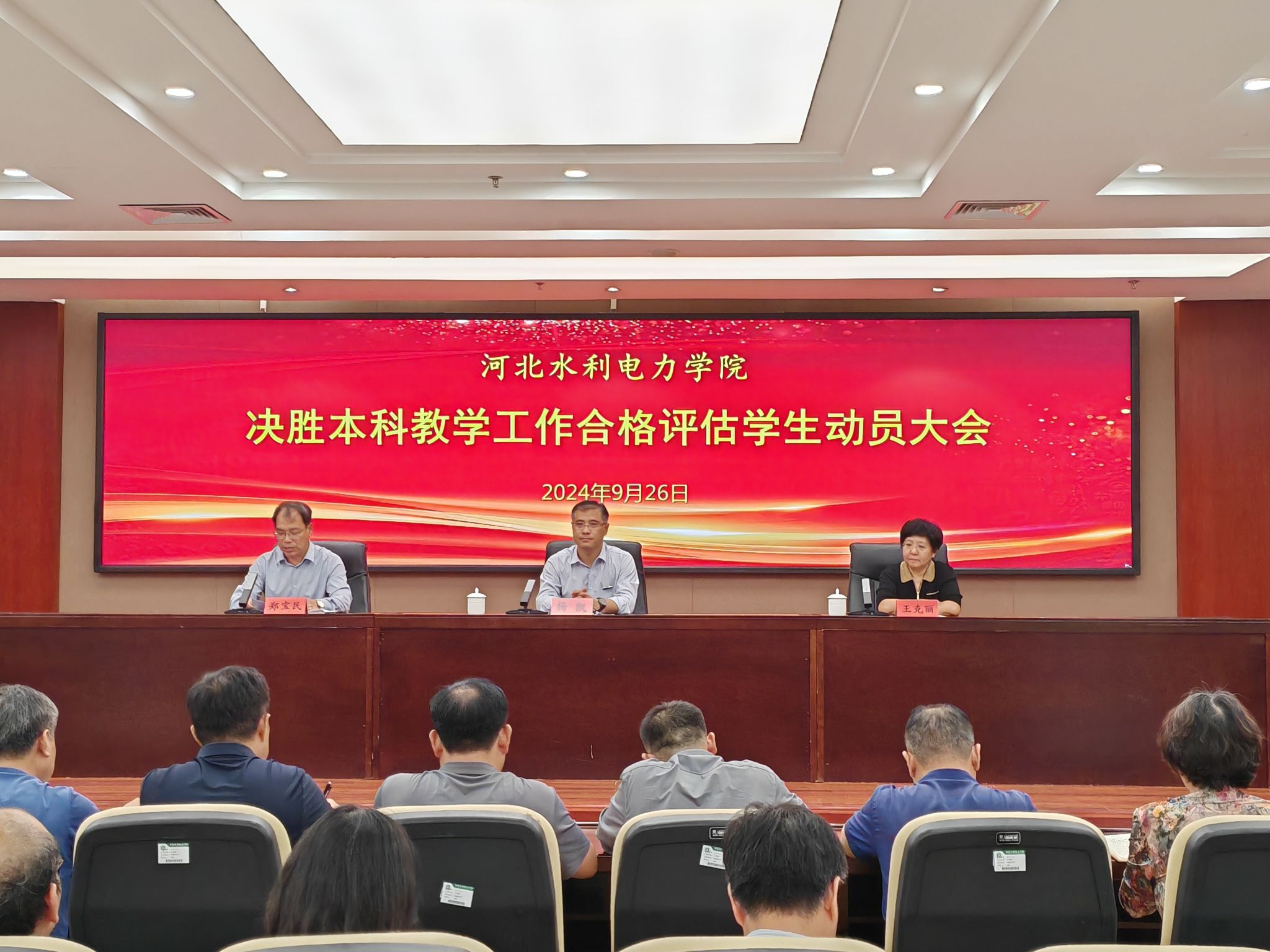 为进一步统一思想、凝心聚力、全力以赴迎接教育部本科教学工作合格评估,9月26日下午,beat365官网在弘文守正楼学术报告厅召开决胜本科教学工作合格评估学生动员大会。本次会议采用主会场同步直播,分会场在线观看形式,各系领导班子成员、全体学工人员、各级学生组织全体成员、各班班长团支书及各宿舍宿舍长共2300余人参加会议。学校党委常委、副校长杨凯出席会议,会议由党委学生工作部部长、学生处处长郑宝民主持。大会现场会上,评建办主任王克丽对beat365官网本科教学合格评估工作做了详细解读;...