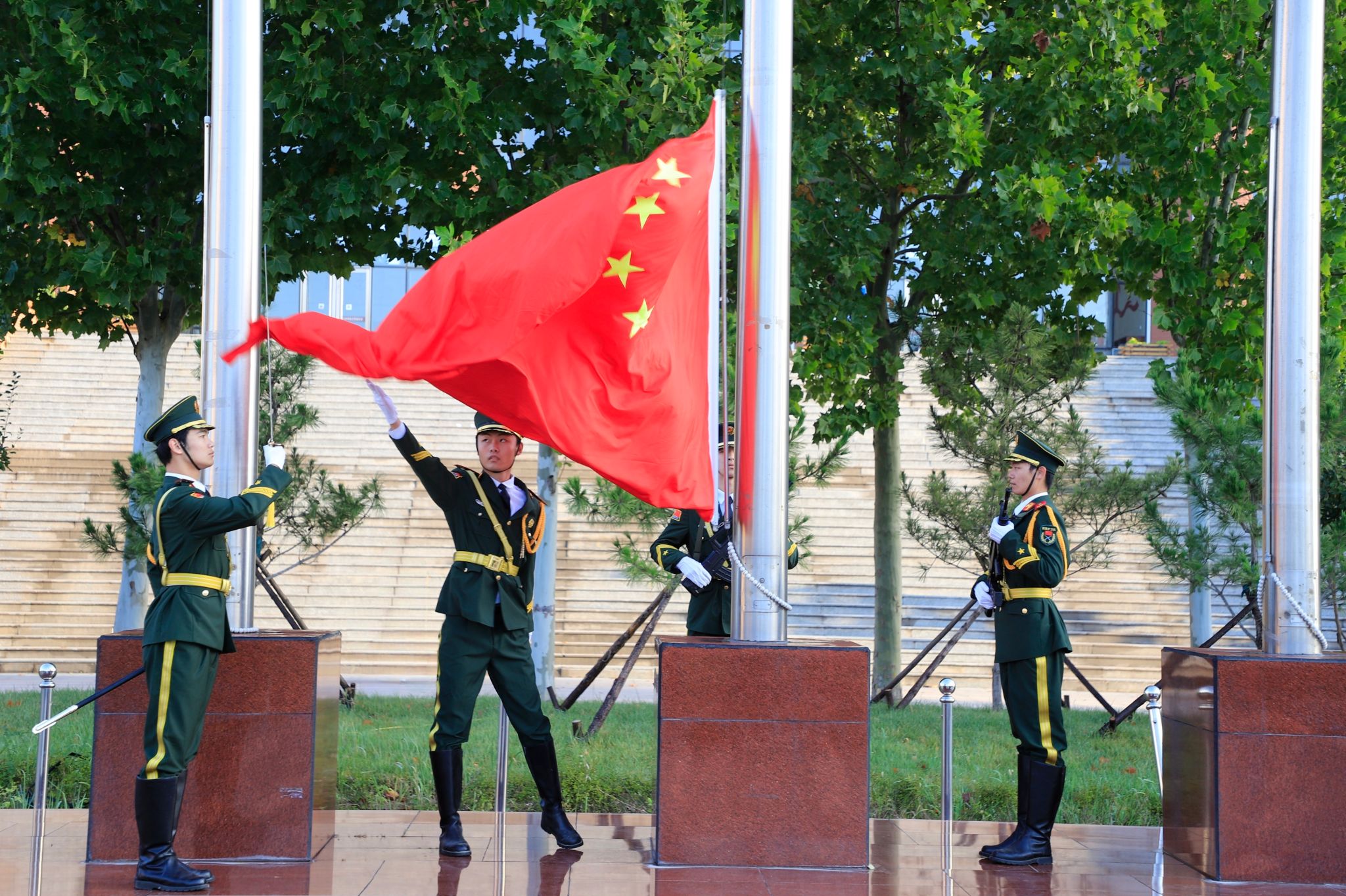 秋风猎猎展红旗,晨曦煌煌贺华诞。为庆祝新中国成立75周年,进一步弘扬爱国主义精神,增强师生爱国意识和民族自豪感,10月1日上午,beat365官网隆重举行庆祝新中国成立75周年升旗仪式。党委书记张效松、校长王滨、党委副书记崔立功、副校长于振海、副校长杨凯及师生代表共计1000余人参加了升旗仪式。升旗仪式由校长王滨主持。上午7点,升旗仪式正式开始。国旗护卫队队员迈着铿锵有力的步伐,护卫五星红旗来到升旗台。伴随着雄壮的《义勇军进行曲》...
