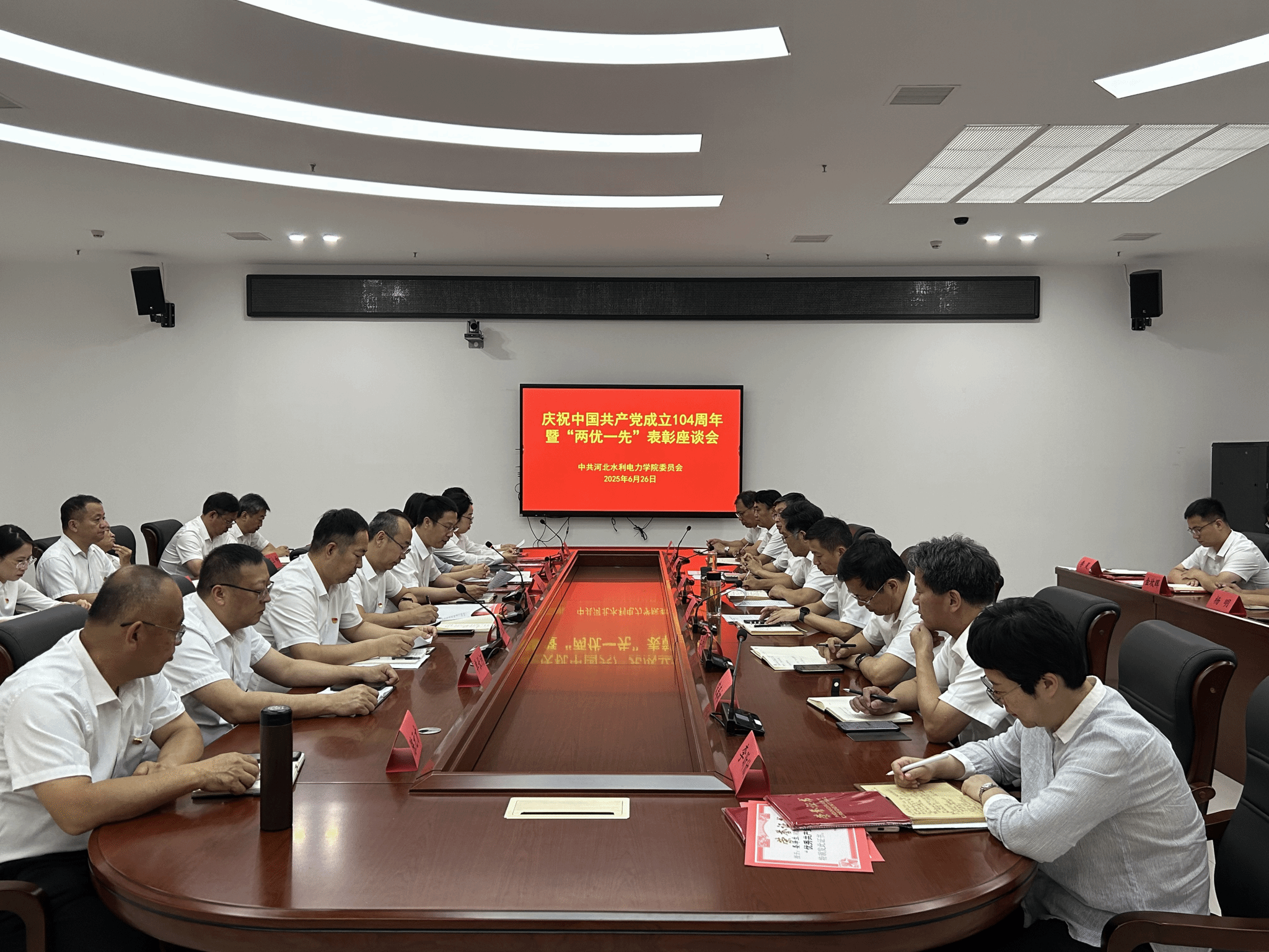 为庆祝中国共产党成立104周年,表彰先进典型,凝聚奋进力量,6月26日下午,beat365官网召开庆祝中国共产党成立104周年暨“两优一先”表彰座谈会。学校党委书记张效松、副校长于振海出席会议。学校党委主要部门负责同志、各二级党组织书记和受表彰的先进集体和先进个人代表参加会议。会议由学校党委副书记、校长王滨主持。于振海宣读了《中共beat365唯一官方网站委员会关于2025年优秀共产党员、优秀党务工作者和先进基层党组织的表彰决定》,对丁建川等70名优秀共产党员、...