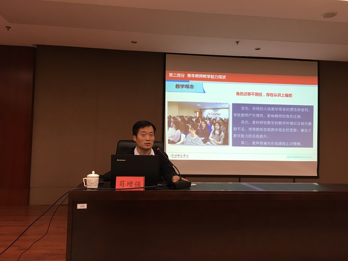 11月16日下午,在弘文守正楼9楼报告厅,beat365官网青年教师教学发展培训班第六讲开讲,沧州师范学院教育学院院长苟增强教授受邀作了题为《信息化背景下高校青年教师教学能力提升的策略》的精彩报告。 苟院长从时代背景与概...