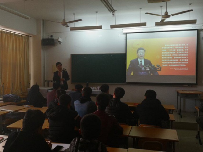 2018年11月29日下午16:00,在笃行楼b区205教室,经济管理学院2018级学生干部“让青春插上理想的翅膀”主题理想信念教育继续开讲,思政部金艳教授为学生们做了主题为“做一个什么样的人”的讲座,讲座由经管学院党总...