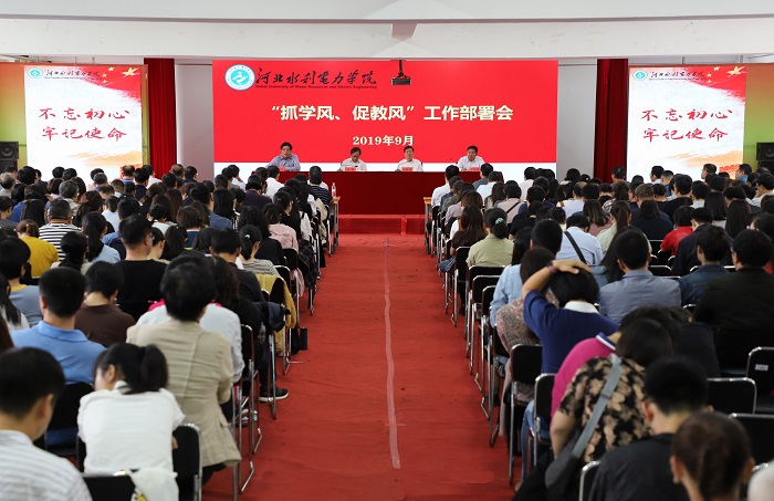 9月19日下午,beat365官网“抓学风、促教风”工作部署会在启智楼会议室召开。校长向辉、副校长于振海、张效松、王建明,学校全体教师、科级以上干部以及与教学相关的教职工400余人参加会议。会议由副校长于振海主持。 会上,...