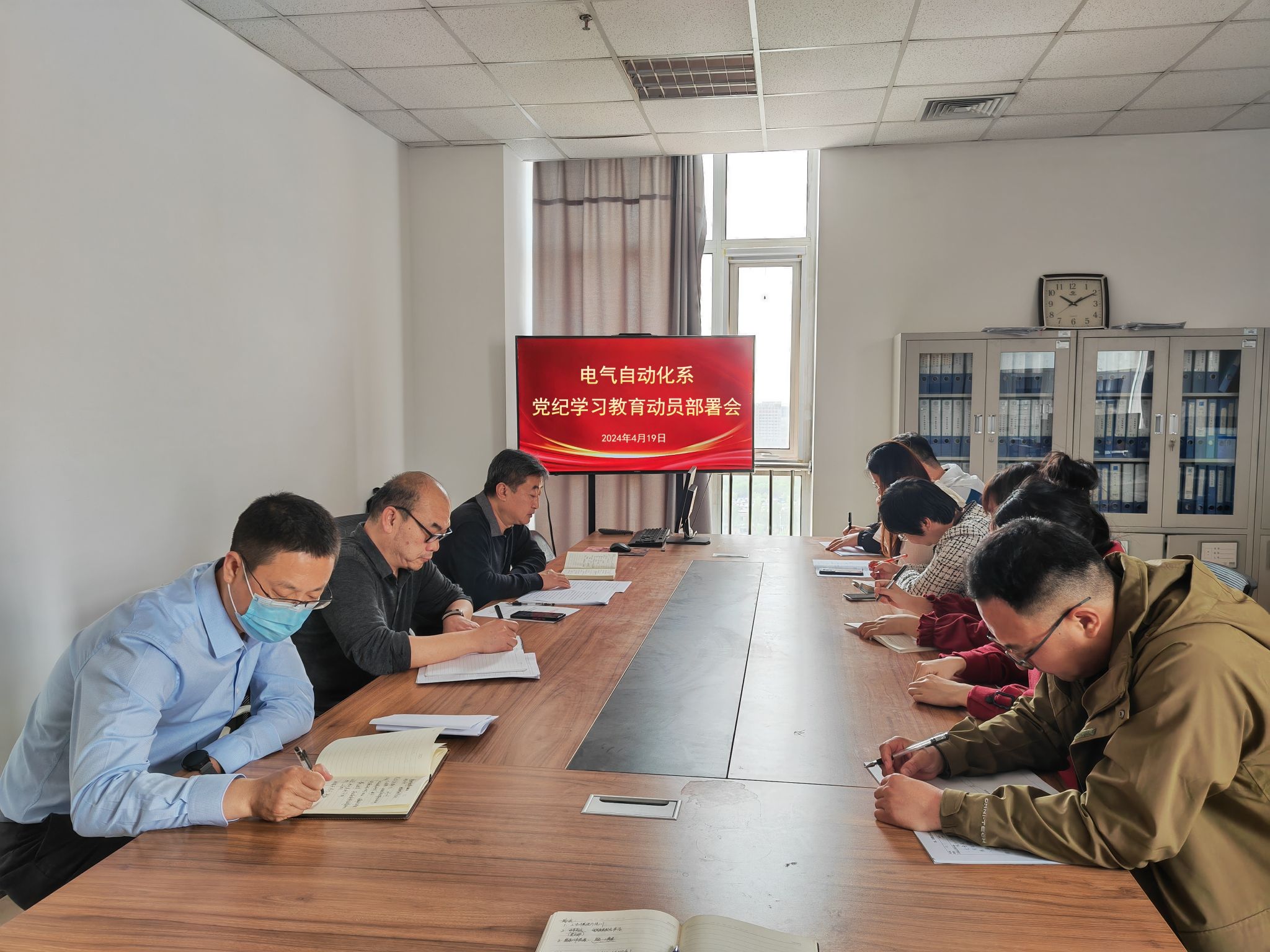 4月19日上午,电气自动化系召开党纪学习教育动员部署会,深入学习贯彻习近平总书记关于党纪学习教育的重要讲话和重要指示精神,传达学习中央、省委和学校党委有关会议和文件精神,研究部署电气自动化系党纪学习教育工作。系党总支书记葛洪伟主持会议,党总支委员、各支部书记、纪检委员参加会议。会议指出,开展党纪学习教育是加强党的纪律建设的重要举措,是推动全面从严治党向纵深发展的重要部署,是教育强国建设的重要保障。系党总支、...
