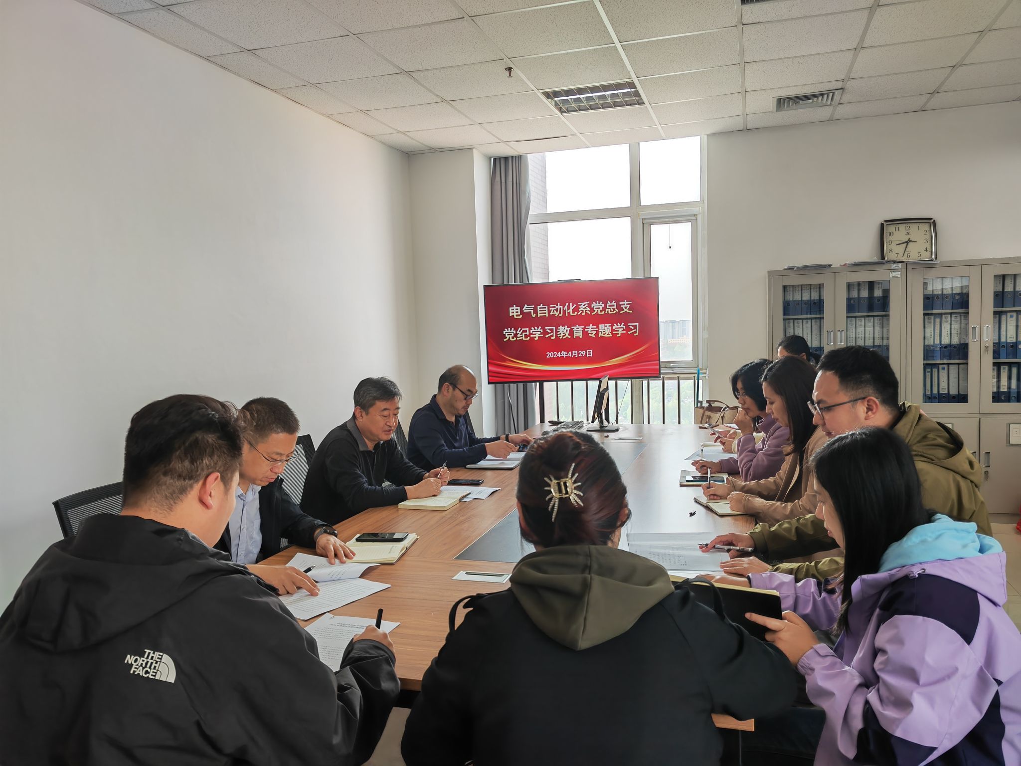 4月29日上午,电气自动化系党总支开展党纪学习教育专题学习,研究部署基层党支部评星定级工作,党总支书记葛洪伟主持会议,总支委员、各支部书记、纪检委员参加会议。会上,系副主任吉庆昌领学了《中国共产党纪律处分条例》(以下简称《条例》)总则部分.葛洪伟作重点发言,他指出,全体党员要深入学习领会掌握《条例》的重大意义、主旨要义和规定要求,进一步明确日常言行的衡量标尺,用党规党纪校正思想和行动,以身作则、以上率下,...
