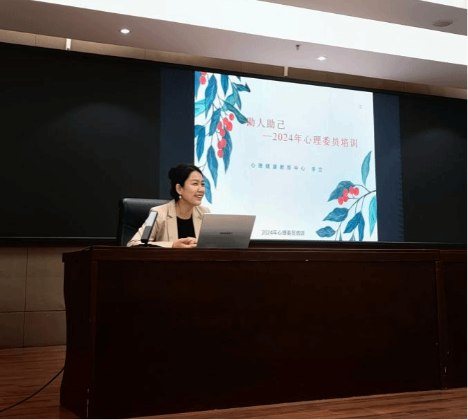 为加强班级心理委员队伍建设,提升心理委员的胜任力水平,增强学生的自助、互助意识与能力,10月24日下午,学生心理健康教育中心在弘文守正楼9楼报告厅举办了“助人助己——2024年心理委员培训”活动,本次培训由学生心理健康教育中心主任李立讲授,各系心理委员近200人参加培训。学生心理健康教育中心主任李立开展讲座此次培训中,李立以理论与案例相结合的方式,对心理委员的角色与职责、心理健康基本知识、心理异常的识别与判断标准、...
