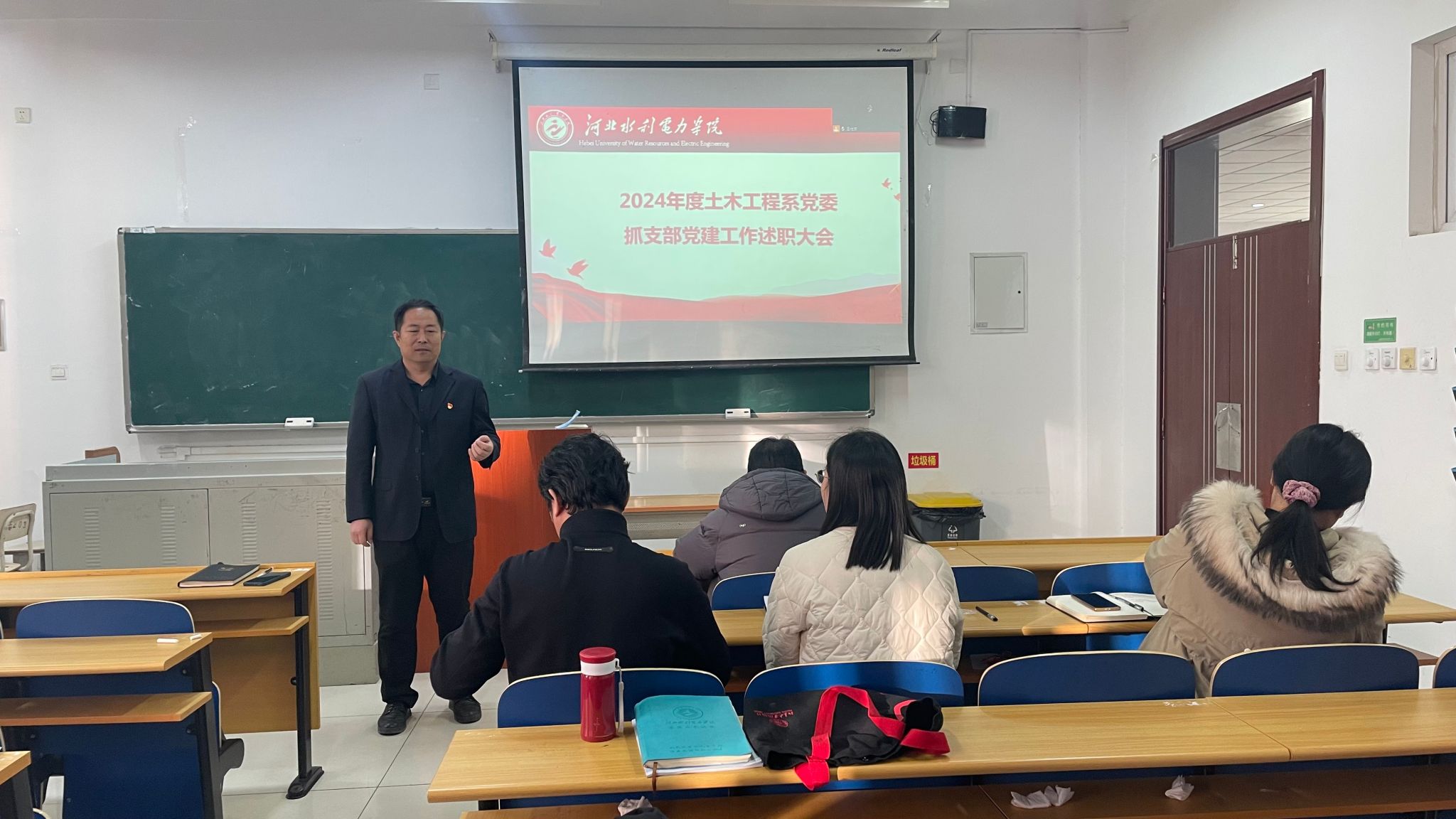 根据《关于做好 2024 年度党组织书记抓基层党建工作述职评议考核工作的通知》要求,为进一步学习贯彻习近平新时代中国特色社会主义思想,党的二十大和二十届二中、三中全会精神,全面贯彻落实习近平总书记关于党的建设的重要思想和全国教育大会精神,1月2日,土木工程系党委在笃行楼A102召开2024年度支部书记述职评议大会。系党委委员、全体基层党支部书记参加会议。会议由系党委书记王诚杰主持。会上,教师一、二支部和学生一、二、...