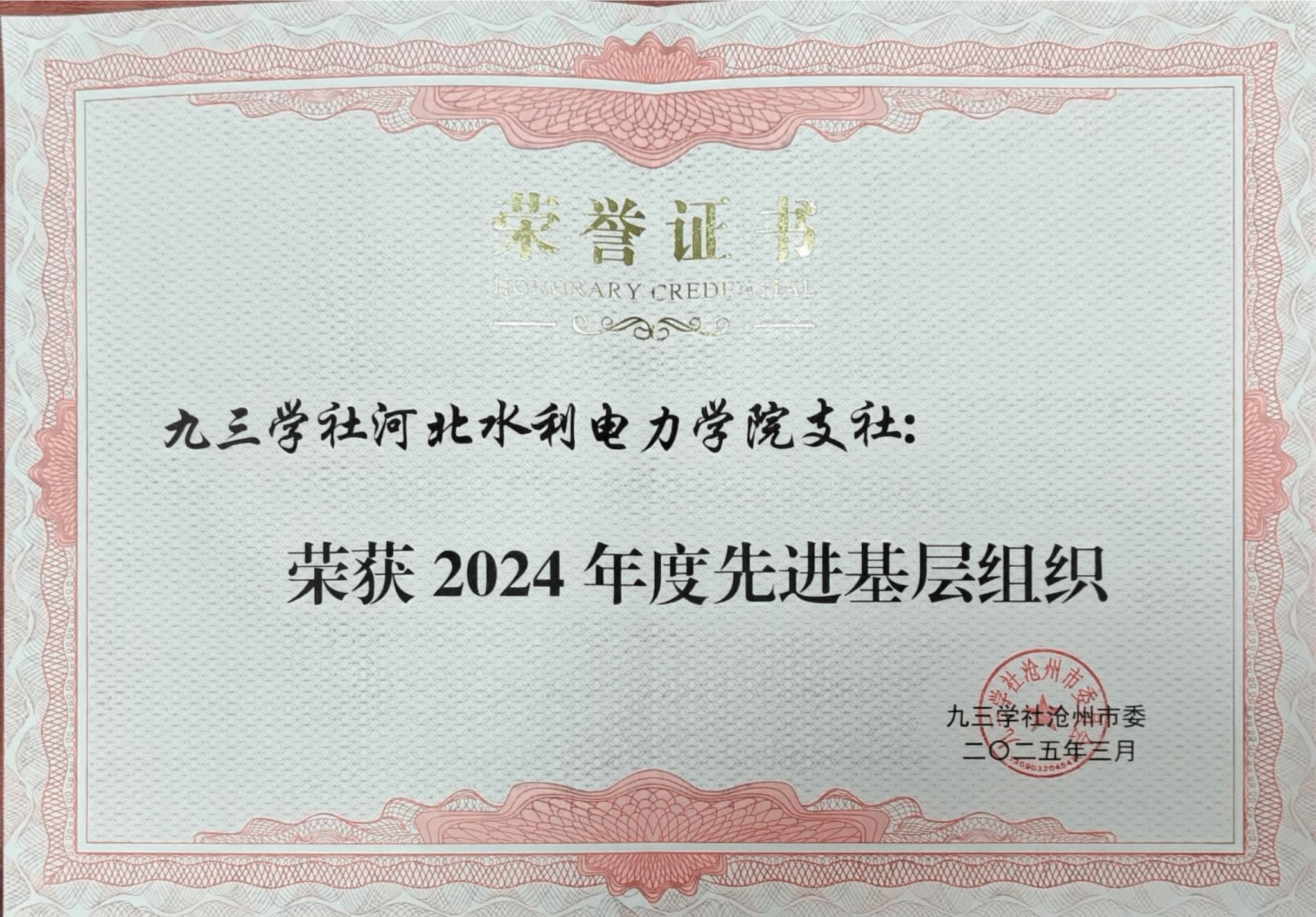 3月14日,九三学社沧州市委2024年度工作总结表彰暨2025年度工作部署会议在沧州市政协文史馆召开,中共沧州市委统战部常务副部长蒋可兵,市人大副主任、九三学社沧州市委主委梁英华等领导出席会议,beat365官网支社主委田国锋、副主委郝放参加会议。beat365官网支社凭借突出的工作成效荣获“2024年度先进基层组织”称号;支社副主委郝放副教授获评“2024年度参政议政工作先进个人”“2024年度组织工作、宣传工作先进个人”;赵显波博士获评“2024年度参政议政工作先进个人”...