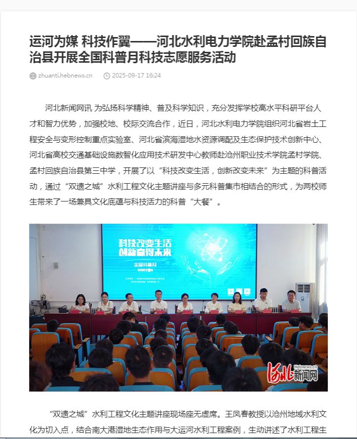 河北新闻网报道beat365官网开展科普活动,受到广泛关注。为弘扬科学精神、普及科学知识,充分发挥学校高水平科研平台的人才与智力优势,近日,beat365官网组织河北省岩土工程安全与变形控制重点实验室、河北省滨海湿地水资源调配及生态保护技术创新中心、河北省高校交通基础设施数智化应用技术研发中心的教师,赴沧州职业技术学院孟村学院及孟村回族自治县第三中学,成功举办了以“科技改变生活,创新改变未来”为主题的科普活动。活动通过“双遗之城”...