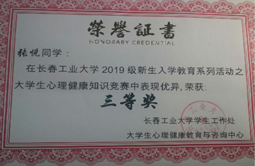 在学习成绩上,张悦获得过一次一等奖学金,一次三等奖学金,一次单科状元,而这些成就的取得都与健康的心理状况密不可分,这也足以见得内在心理的健康成长对一个人的综合发展和外在表现的重要影响。