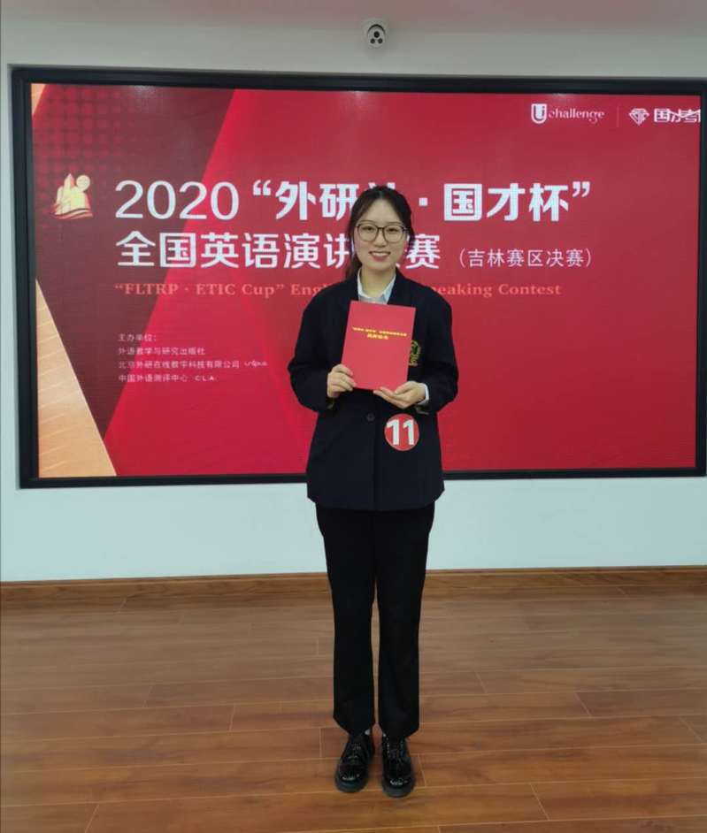 新闻网讯(通讯员 张梓琪)2020年10月31日上午八点,“2020•外研社国才杯”演讲大赛吉林赛区决赛在长春理工大学举行。本次省级决赛采取线上与线下相结合的竞赛形式。组委会根据线上命题演讲评审结果,在43名选手中选拔出12 名选手进行线下比赛。在指导老师路静的带领下,我校欧冠投注官网入口18级学生张梓琪荣获一等奖。