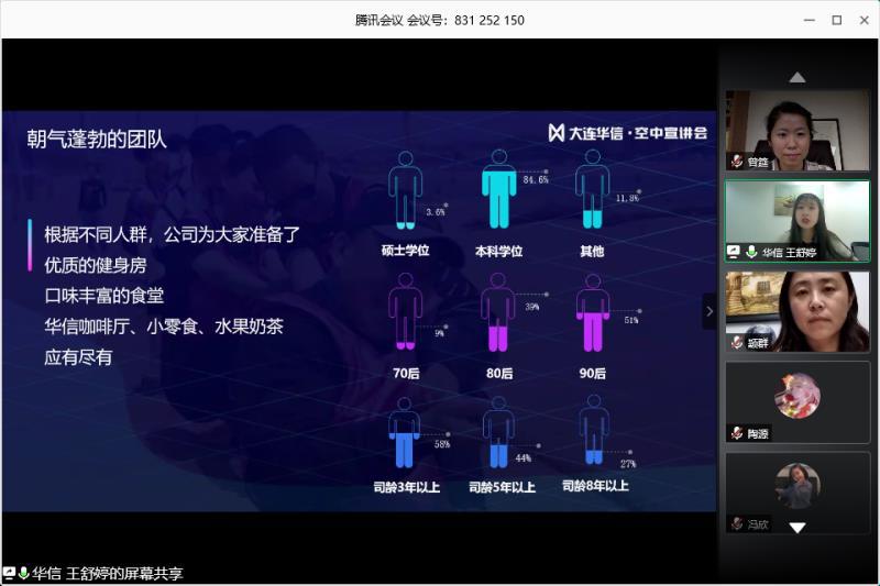 2020年6月11日晚19:30,由于疫情影响,欧冠投注官网入口特邀请大连华信计算机技术股份有限公司,在腾讯会议平台,为欧冠官网日语专业大三的学生召开了“大连华信实习线上宣讲会”。本次宣讲会由大连华信人力资源负责人白璐主持,王舒婷为主讲人,欧冠投注官网入口副书记王颖群、日语系主任曾妍及全体2017级日语专业学生参加了本次会议。
