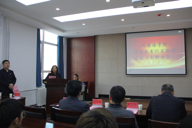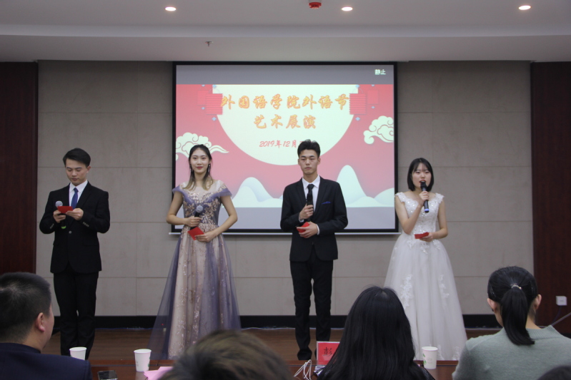 (通讯员 刘忠超)为进一步总结学风建设的成绩和经验,表彰宣传在学风建设中表现突出的先进集体和优秀个人,让全体学生学有榜样、赶有目标。12月31日下午,外国语院在学院会议室举办2019年度学团工作表彰大会暨“外语节”艺术展演。校党委副书记李雁冰,校党委学生工作部部长周文军,校团委书记仲崇利,学院党委书记尤海涛,院长彭又新,党委副书记王颖群及英、日、俄语系主任出席本次大会。表彰大会由学院团委书记赵海涛主持,大会一共有四项内容。
