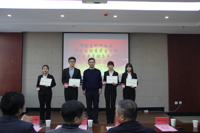 校团委书记仲崇利为研究生科研标兵、研究生优秀学生干部、最美辅导员老师获奖代表颁奖