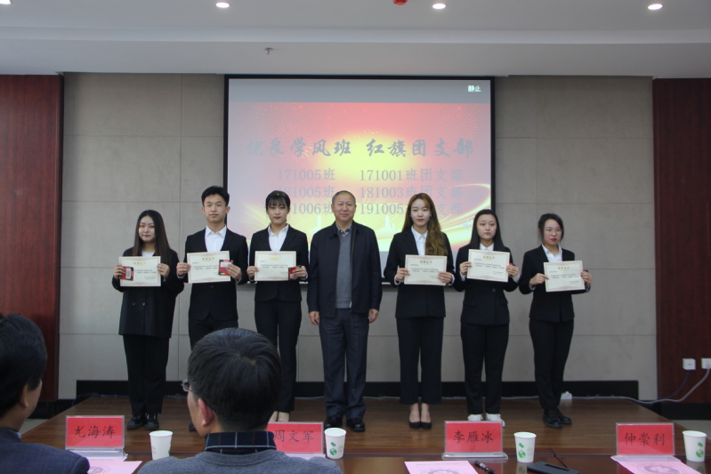 校党委副书记李雁冰为优良学风班、红旗团支部获奖代表颁奖