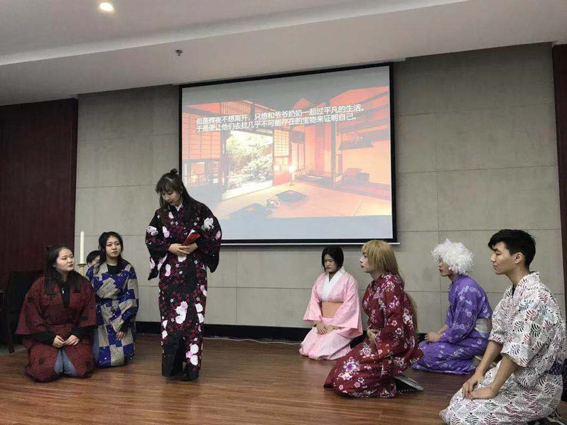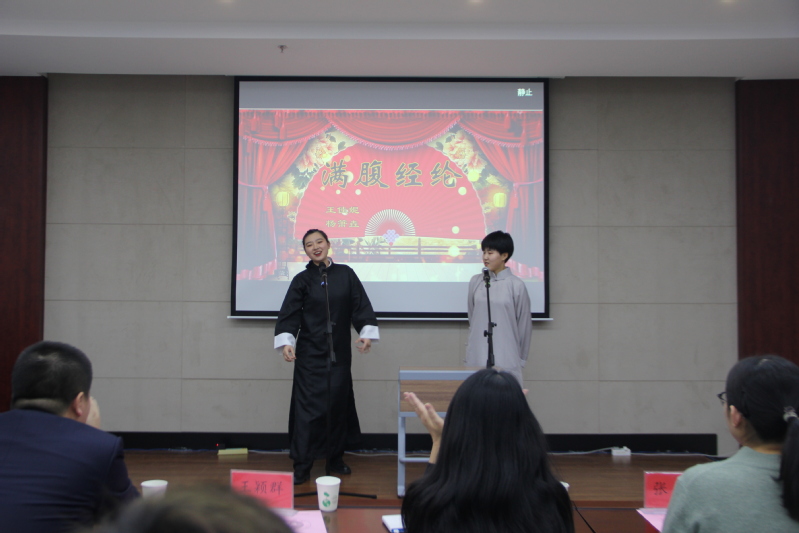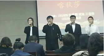 表彰大会结束后,与会领导共同观看了“外语节”艺术展演。学院学生结合自己的专业特色,用独特的方式描绘大学生活,节目形式多彩多样,展示学院学生的青春与活力。