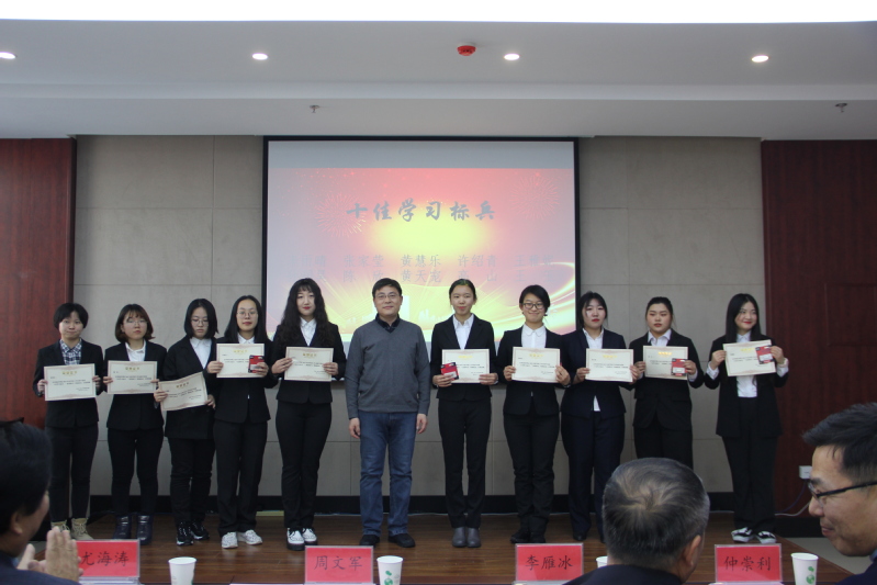 校党委学生工作部部长周文军为十佳学习标兵获奖代表颁奖