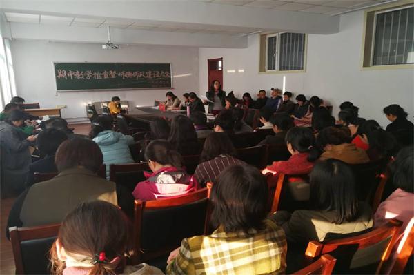 2018年10月24日下午1点30分,欧冠投注官网入口在会议室召开了期中教学检查暨师德师风建设大会,全体教职工参加了大会。会议由学院党委书记尤海涛主持。院长彭又新首先宣读了学院师德师风建设的活动方案,并宣布学院将开展围绕 “师德师风建设”的一系列活动。