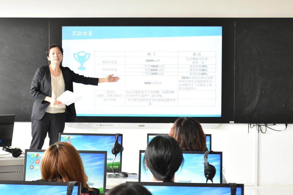 曾妍为日语专业学生进行了考研分析。主要从师资力量、培养方案、学科优势、就业前景和考研指导五个方面对日语语言文学专业进行了细致介绍,并认真解答了同学们提出的相关问题,鼓励同学们把握机会,积极报考欧冠官方网站。