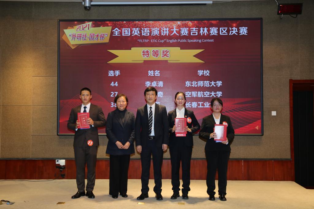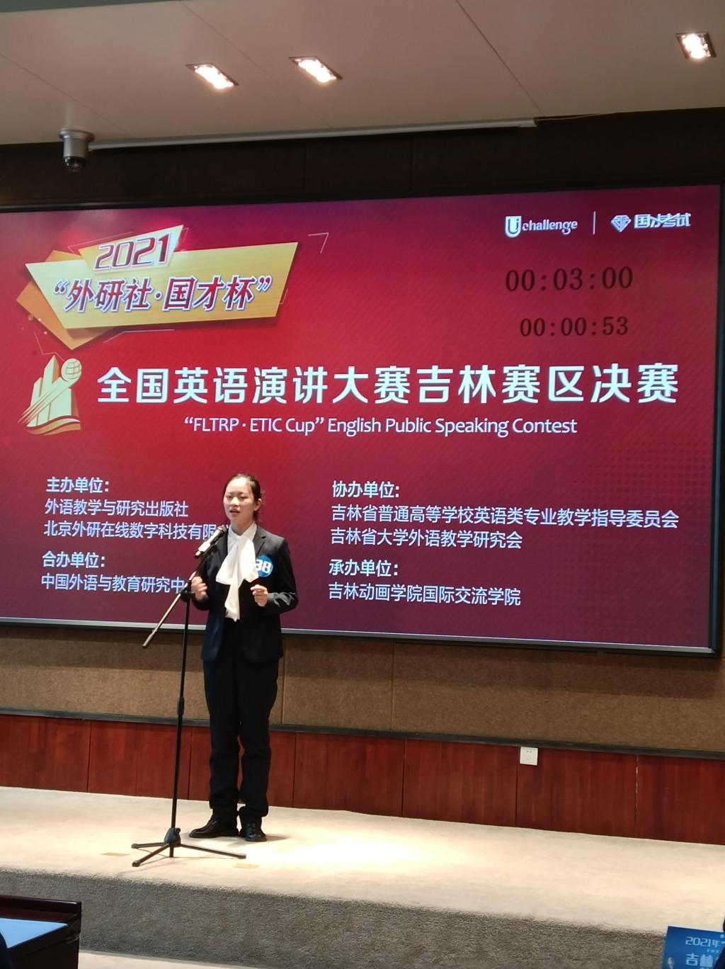 新闻网讯(通讯员 孙莉)10月30日,2021年“外研社·国才杯”全国英语演讲大赛吉林赛区决赛在吉林动画学院文化艺术中心隆重举行。经过8个小时的激烈角逐,欧冠官网公共外语教学部老师指导的王蕊同学从52名参赛选手中脱颖而出,荣获特等奖,并将与来自东北师范大学、空军航空大学的两名同学代表吉林省前往北京参加全国总决赛。