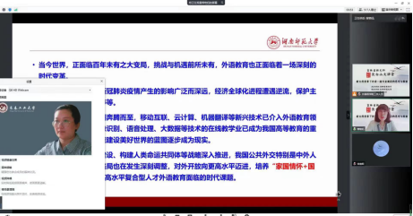 此次“长白山大讲堂”活动,根据我省《全面深化“四新”建设,加快推进本科教育提质创新发展行动计划(2021-2023)》安排,经省教育厅同意,由长春师范大学举办。这是吉林省继2021年12月,第二次为提质外语类新文科学科建设和人才培养,而举办的论坛活动。学校教务处和学院高度重视,认真组织院、系(教研室)负责人、学科专业带头人、专任教师,共81人参加(观看)了“长白山大讲堂”外国语言文学类的系列讲座。