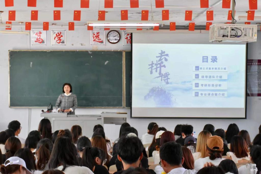 刘宇给英语专业的同学们介绍了外国语言学及应用语言学、英语语言文学两个研究方向的基本情况、师资力量以及毕业生去向。通过近三年的数据,包括考研人数、考研国家线分数、考研录取率等,分析了考研形势,提示同学们结合自身情况确定考研目标。并详细地介绍了考研科目及参考书目,耐心地解答了同学们有关考研的疑惑,给予相关备考建议。