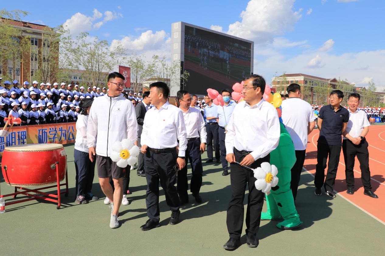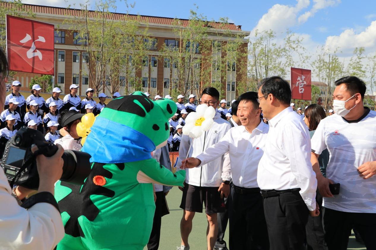 运动会正式开幕,校党委书记孙长智、校长张明耀及其他相关部门领导亲临现场,来到欧冠官网 表达亲切慰问和深切的希冀,并与同学们进行了友好交流和互动。