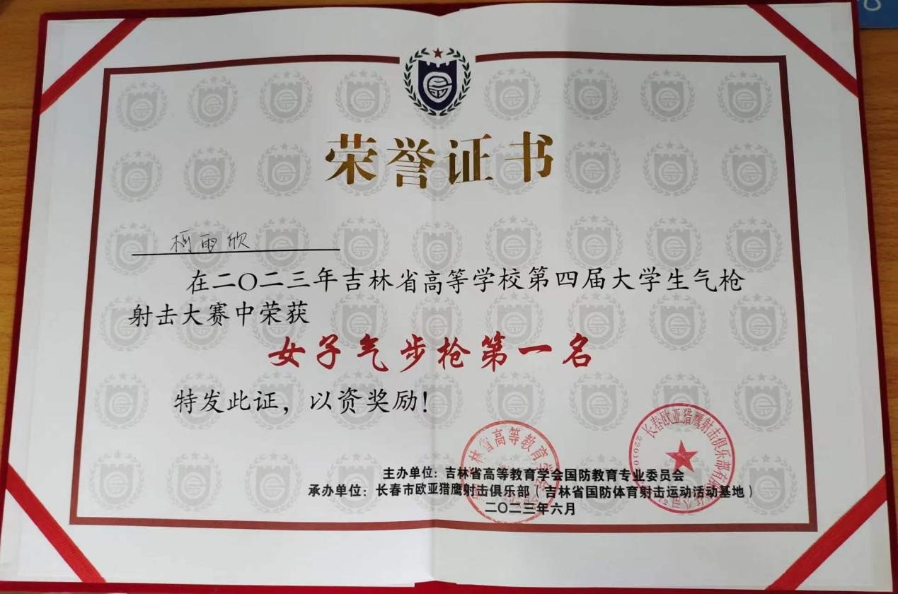 (通讯员 张晓君 柯雨欣 魏瑶)为进一步落实立德树人根本任务,增强学生国家安全意识,培养学生国防素质观念。吉林省高等教育学会国防教育专业委员会于6月10日主办吉林省高等学校第四届大学生气枪射击大赛。欧冠官网柯雨欣同学参加本次比赛并取得女子气步枪第一名和女子气手枪第三名的好成绩。