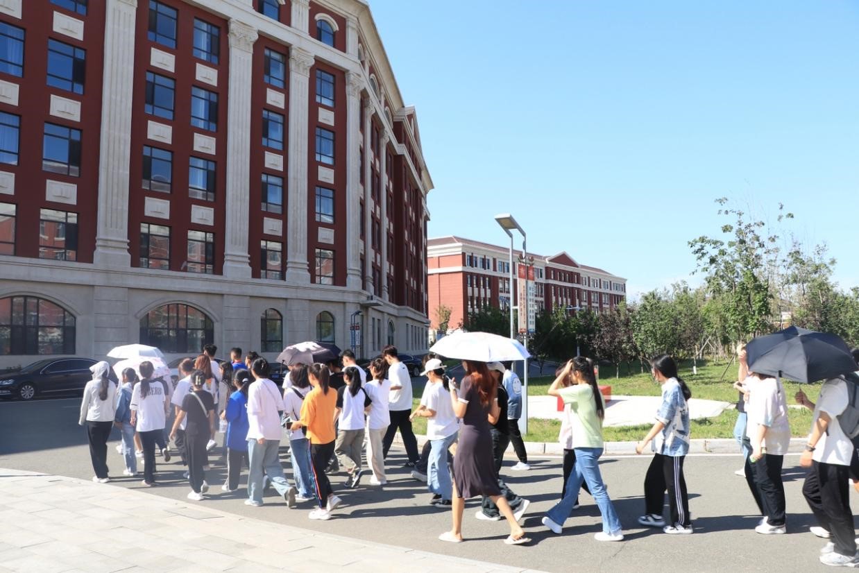 2023级新生们先后来到了学校东区和西区,进入了四史馆、图书馆、教学楼、操场等校园场所进行参观。