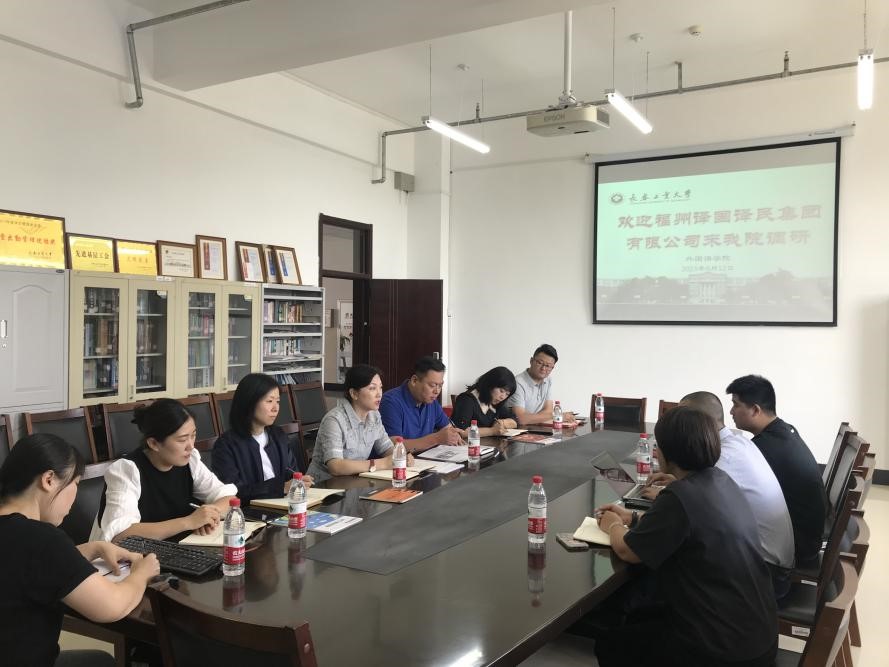(通讯员 王婷)为拓宽学生实习实践基地和就业岗位,9月12日,学院邀请福州译国译民集团有限公司来院洽谈交流合作。欧冠投注官网入口党委书记张子宇、院长王轶、党委副书记于伟、副院长李秀文、曾妍及学生辅导员参加了洽谈会。