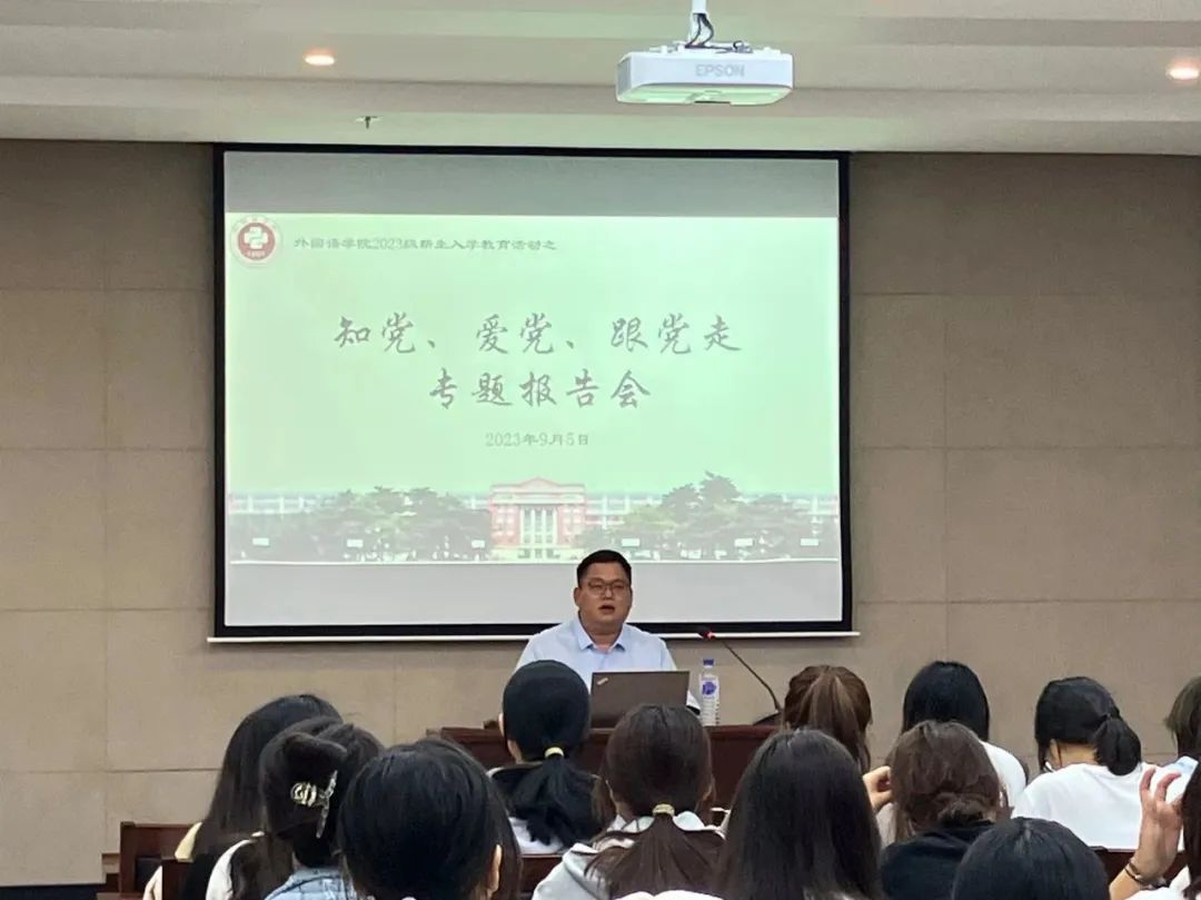 (通讯员 张晓君 任晓彤)为了加强学生对党史的了解和掌握,强化党史教育,进一步感悟党的光辉历史和精神内核,切实把党史学习教育作为青年学生思想武装和思想建设的重要内容,欧冠投注官网入口于9月5日开展了“知党,爱党,跟党走”专题报告会,本次会议由刘明慧老师主持,学院党委书记张子宇主讲,全体23级新生参加本次报告会。