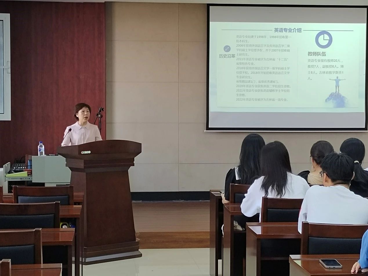 英语专业由英语系主任刘宇进行介绍。首先,她代表英语专业所有老师对2023级新生的到来表示热烈的欢迎。随后详细地为同学们讲解英语专业国内外现状及发展趋势、人才培养方案、毕业及授予学位要求及未来就业方向的同时,也对历年专业四级、专业八级考试及考研情况进行了介绍。除此之外,老师还通过精彩的图片向大家展示了欧冠官网深厚的师资和正派的学风。希望同学们在享受良好学习空间的同时,也能保持内心对英语专业的尊重并且实现自己对于大学阶段的目标追求。