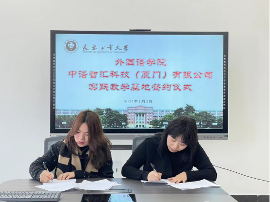 福建亿学教育科技集团有限公司经理陈志能、中语智汇科技(厦门)有限公司总经理邱泽萍对此给予了积极的回应。她们分别介绍了各自公司的发展概况,展示了在外语智能实践教学平台、虚拟仿真实验教学平台、外语智慧教学资源建设方面取得的成绩,并表示可在多领域与学院开展深度合作,从而进一步推动学生的实习就业和双方更好地发展。