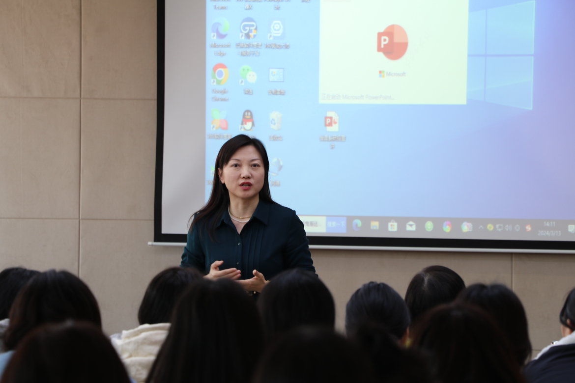 刘明慧老师对同学们的就业问题进行了动员讲解。她详细指出了同学们从现在到毕业应该注意的事项,并鼓励同学们积极主动地与各位老师进行交流,并对同学们提出了几点建议:希望大家树立正确的就业导向观念,把握考研就业形势,鼓励同学们提前做好准备,结合自身实际情况精准定位。