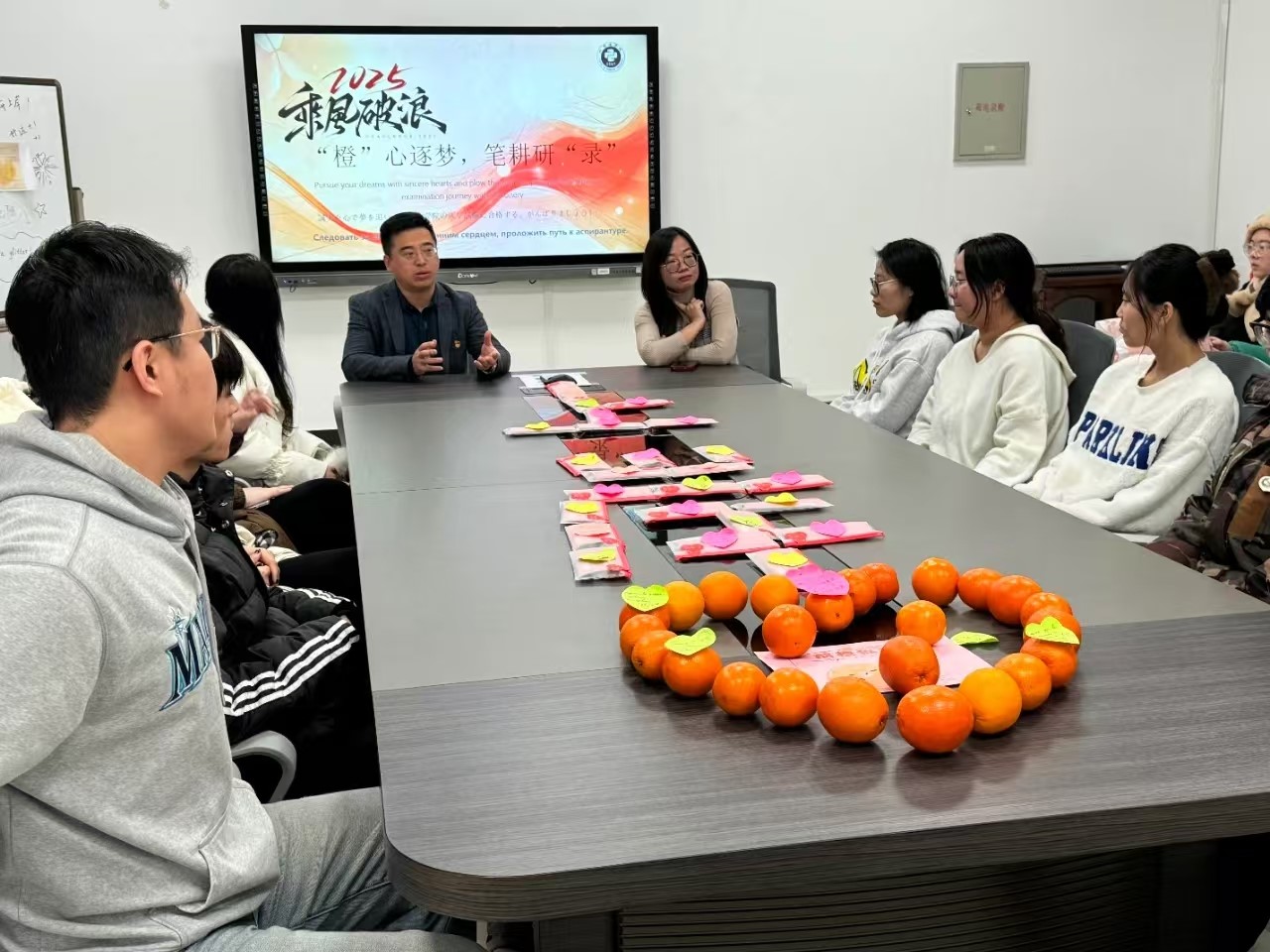 本网讯(通讯员 秦艳萌)为鼓励考研学生考试信心,缓解考研学生备考压力,欧冠官网于12月12日上午在433会议室举办“橙”心逐梦、笔耕研“录”活动。学院党委副书记刘凤利,党委专职组织员、毕业班辅导员谭密以及在校备考的考研学生参加了此次活动。