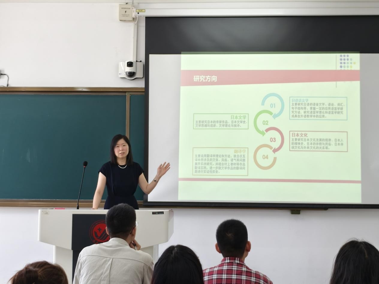 导师见面会后,学院分专业开展了新生入学教育。曾妍和英语系主任刘宇分别就各专业的培养方案、课程设置、奖助体系、学术活动、社会实践及就业前景等方面进行了深入讲解,为同学们答疑解惑,帮助大家尽快适应研究生学习生活。