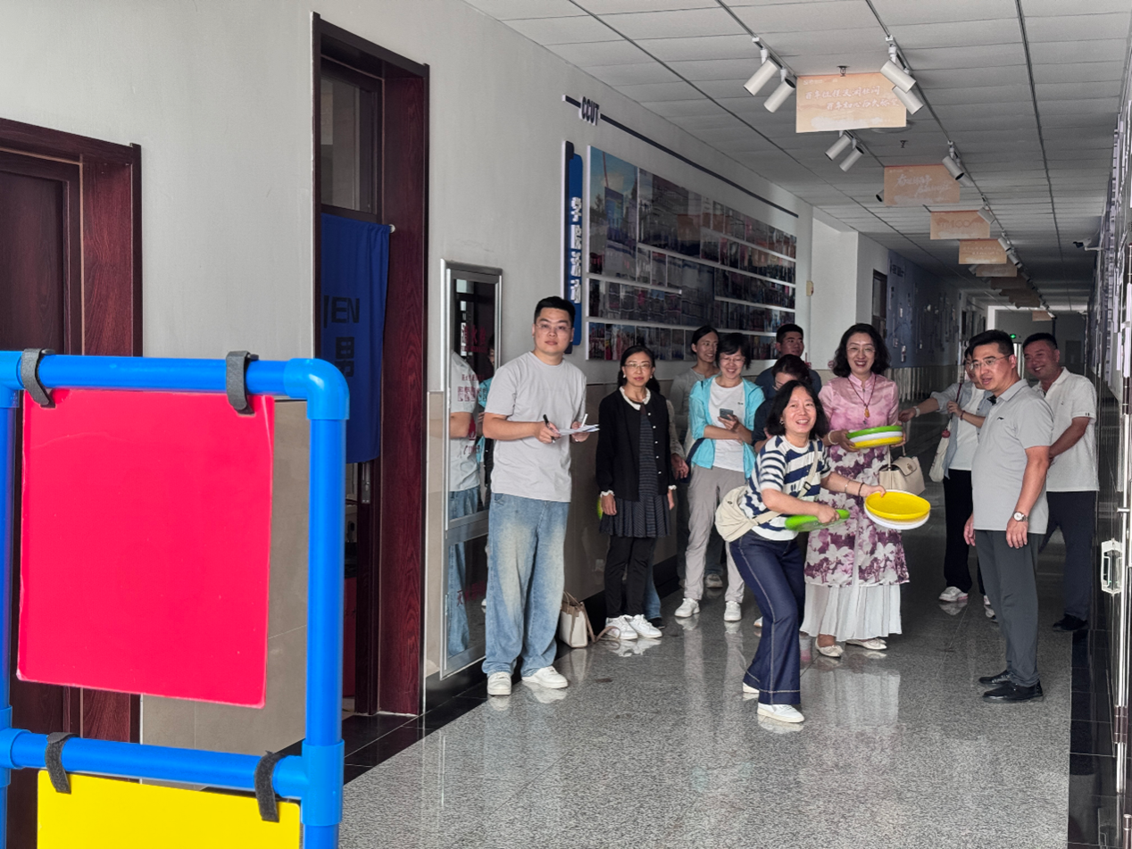 本次娱乐运动会共设置投壶、飞盘掷准、“步步为营” 三大项目:投壶区营造古韵氛围,教师专注完成投掷动作,中壶时现场响起掌声,偏壶时互动氛围活跃;飞盘掷准环节,参赛者通过调整发力方式与投掷角度,展现身体控制能力;“步步为营” 项目需借助三块砖头交替前进,教师在协调力比拼中相互配合,现场秩序良好且互动有序。