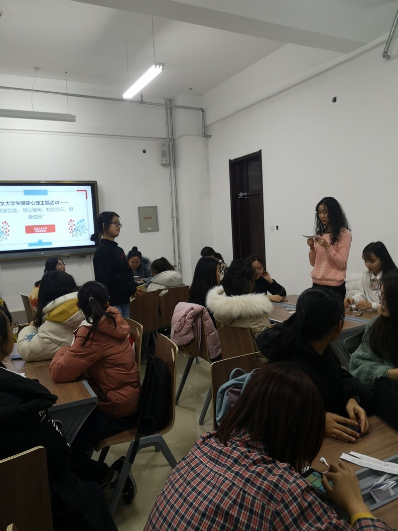 (通讯员:蒋文洋,孙润昊)2019年12月4日16:00至17:36,为了帮助女大学生更好地融入大学校园,切实解决在生活、学习中的各种问题,收获健康阳光的心理状态,同时响应12月1日世界艾滋病日的号召,更好地在大学生中宣传艾滋病知识与理念,欧冠官方网站朋辈心理辅导站特在北湖东区主楼374、366室展开“朋辈互助,倾心相伴,知艾防艾,健康成长”主题女大学生朋辈心理辅导活动。该活动由赵君、王颖群、刘明慧老师指导,孙润昊等同学负责组织,18级19级女大学生同学积极参加。