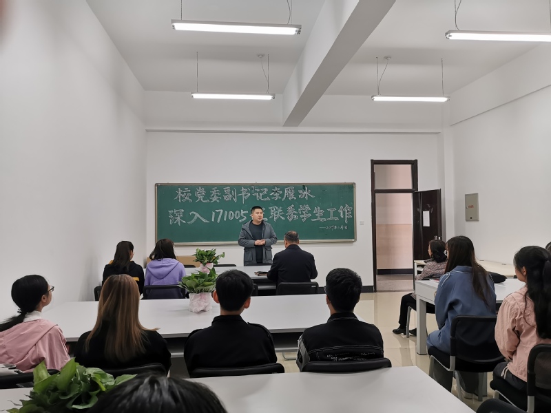 (通讯员:李雨晴)11月1日,为积极响应《欧冠官方网站领导干部深入基层联系学生工作实施方案》要求,深入基层学院,进入学生班级,与学生“面对面”,把思想政治工作真正做到学生心坎上,校党委副书记李雁冰再次来到对接班级171005班,了解学生情况,解决学生困难。本次联系工作气氛热烈,效果显著,师生共同期待下次见面。