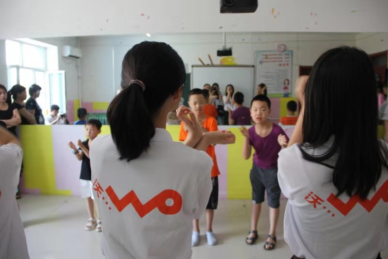 同学们以“飞扬学子梦,心系育龙情”为主题的社会实践活动正式拉开了帷幕。首先同学们教小朋友唱跳英文歌舞,小朋友们表得十分活跃、现场气氛非常融洽。