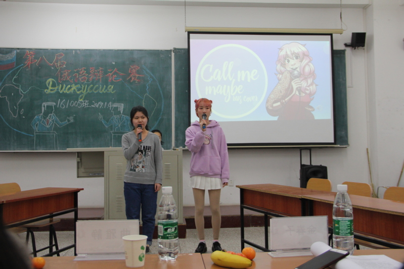 在大二同学美妙动听的开场歌声中,大赛开始。两位主持激情昂扬的中俄双语开场白后,辩论赛正式拉开帷幕。