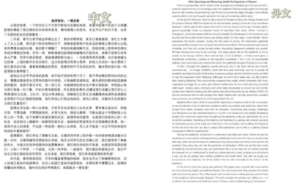 此次双语主题征文活动,大家用手中的笔和铿锵有力的声音记录了这场抗议阻击战中值得铭记的时刻,一起为这场生命健康保卫战助力。通过优美的双语表达,展现了欧冠官网学生们的积极风貌和语言风采,推动了欧冠官网疫情期间的文化建设。
