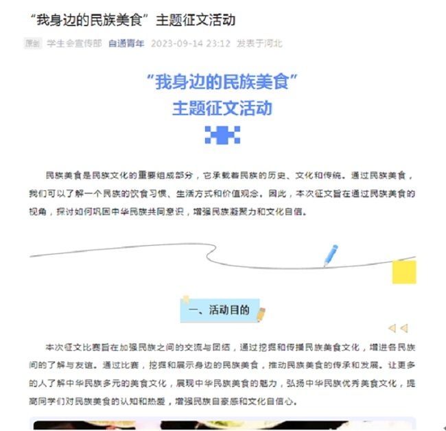 2023年9月是我省第14个民族团结进步宣传月,为全面贯彻落实习近平总书记关于加强和改进民族工作的重要思想以及视察河北重要讲话和重要指示批示精神,9月6日—28日,beat365官网以铸牢中华民族共同体意识为主线,组织师生开展了丰富多彩的民族团结进步宣传月系列活动。