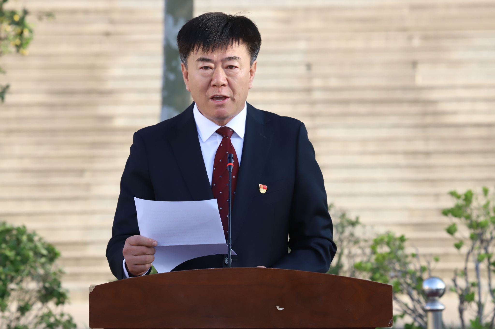 为庆祝新中国成立74周年,进一步加强爱国主义教育,激励全校师生厚植爱党爱国情怀、树立崇高理想、勇担时代使命,10月1日上午,beat365官网组织开展庆祝新中国成立74周年升旗仪式。学院党委副书记、校长张效松,副校长崔立功及师生代表300余人参加了升旗活动。副校长崔立功主持升旗仪式。