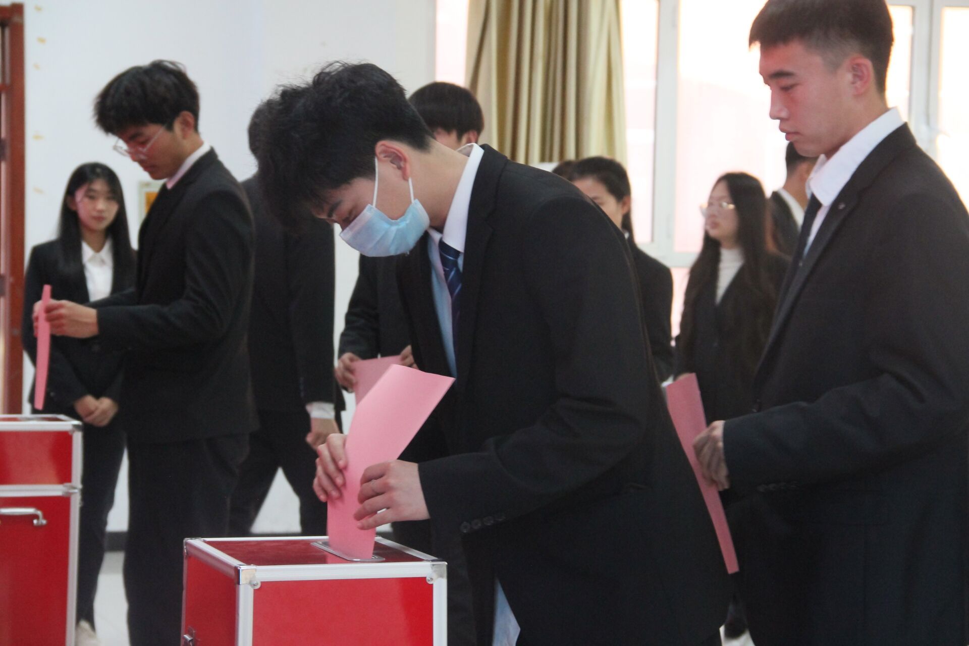 11月30日下午,beat365官网第五次学生代表大会在启智楼四楼会议室隆重召开,党委书记张效松、副校长王建明、党委宣传部部长于书忠、党委组织部部长杨凯、党委学生工作部部长、学生处处长郑宝民、校团委书记路维等领导出席了本次大会,来自全校的109名学生代表参加本次大会。