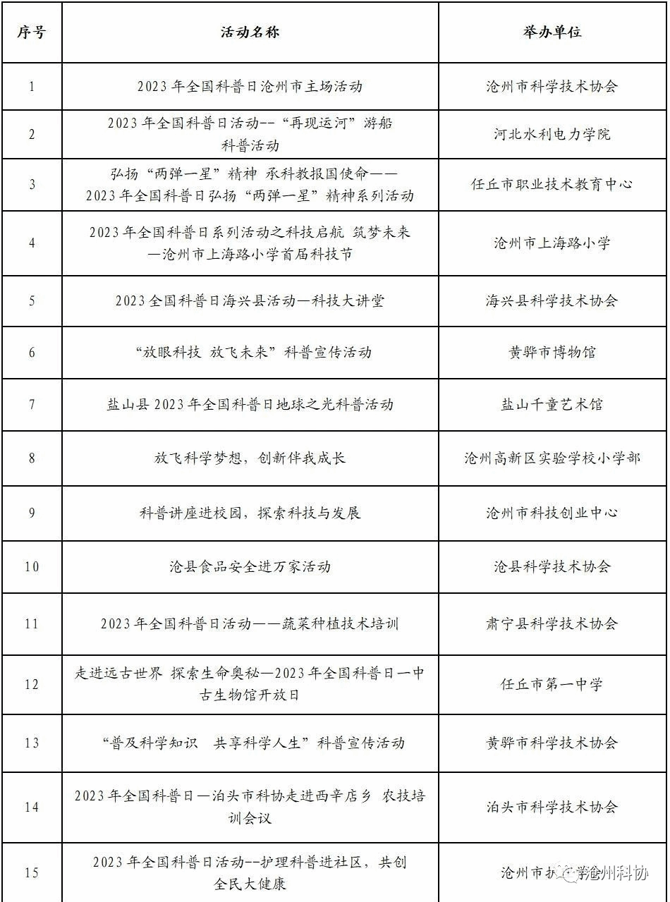 2023年河北省全国科普日优秀活动