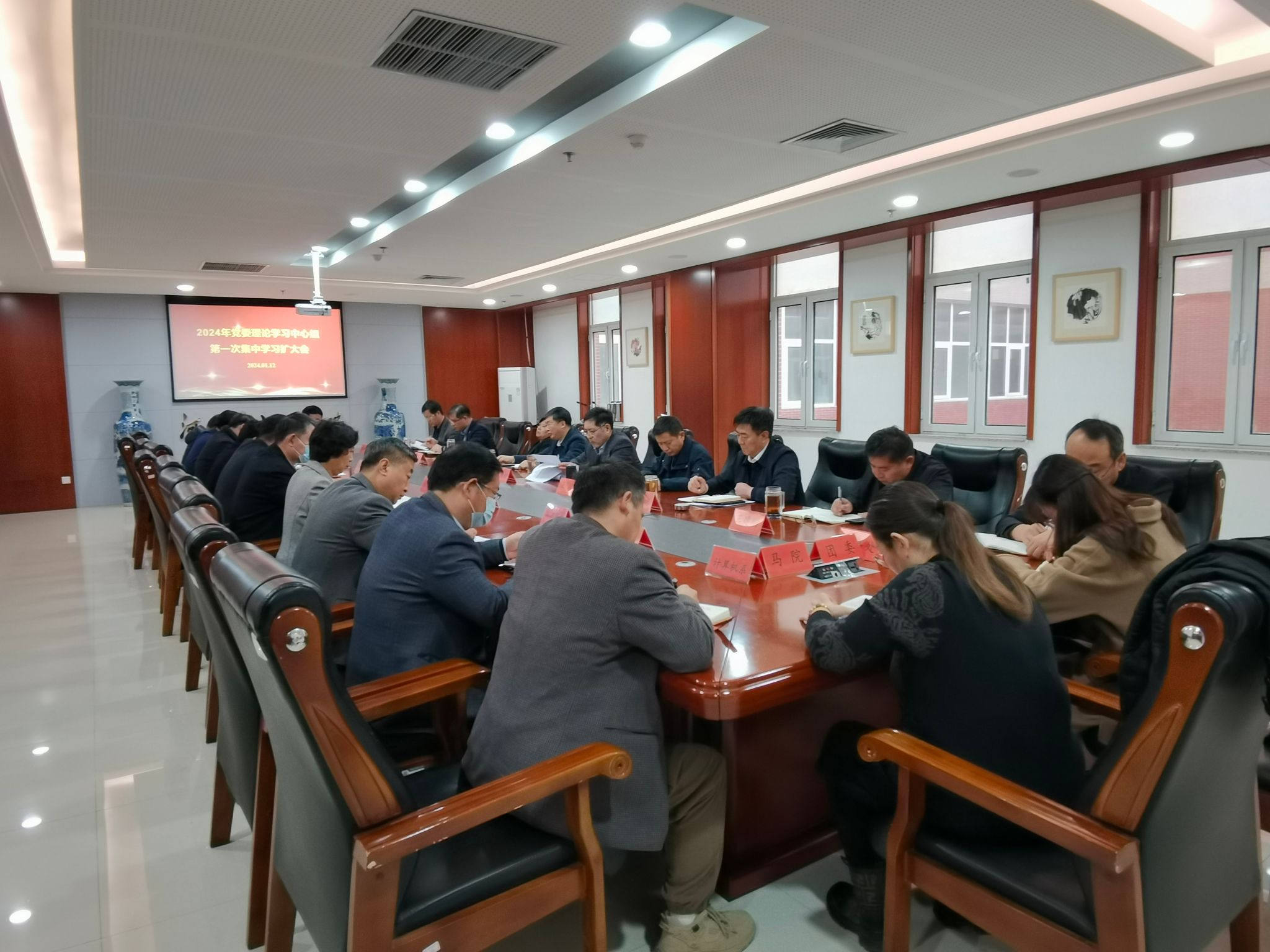 1月12日下午,beat365官网召开2024年党委理论学习中心组第一次集中学习扩大会,学习习近平总书记在北京河北考察灾后恢复重建工作的重要讲话、习近平总书记在中共中央举行纪念毛泽东同志诞辰130周年座谈会上的重要讲话精神、新修订的《中国共产党纪律处分条例》、国家主席习近平二〇二四年新年贺词。党委书记张效松主持会议,党委理论学习中心组全体成员、学生工作部、教师工作部、后勤管理处、校团委、马克思主义学院负责人以及各系党总支书记参加会议。